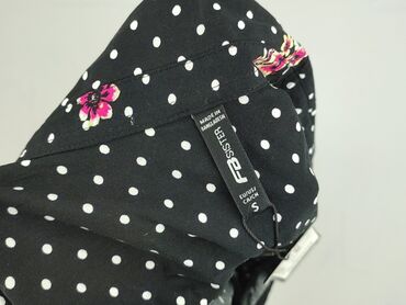 - Kolor: czarny w białe groszki, z nadrukiem drobnych kwiatów w odcieniach różu i żółci