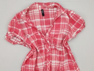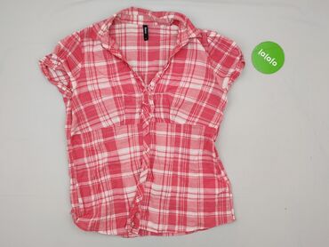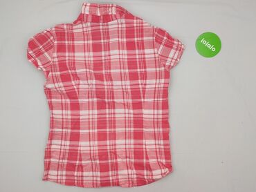 Koszula damska w kratę, krótki rękaw - Rozmiar: S (metka “S”) - Fason: taliowana, zapinana na guziki z przodu - Kołnierzyk klasyczny - Krótkie rękawy z delikatnym marszczeniem - Dwie kieszenie na ...