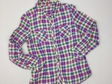 Koszula damska CLOCKHOUSE (C&A) - Rozmiar: XL - Krój: koszulowy, taliowany paskiem z tego samego materiału - Wzór: krata w odcieniach białego, granatu, różu i fioletu - Materiał: 100% bawełna (lek...