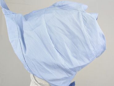 Koszula damska H&M - Model: klasyczna koszula z kołnierzykiem, zapięcie na guziki. - Kolor: jasny niebieski w bardzo drobny, pionowy prążek; białe kontrastowe wykończenie wewnątrz kołnierzyka i ma...