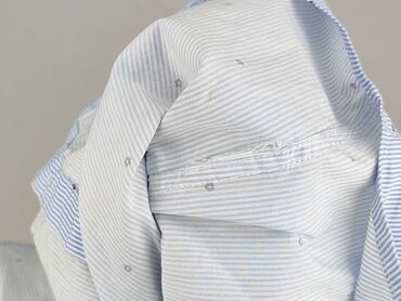 Koszula damska w biało-niebieskie paski, wykonana z materiału o luźnym splocie. Posiada klasyczny kołnierzyk i zapięcie na guziki, a także dwie praktyczne kieszenie na piersi. Długie rękawy zakończ...