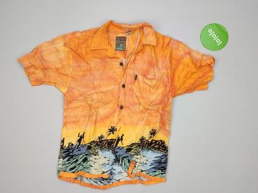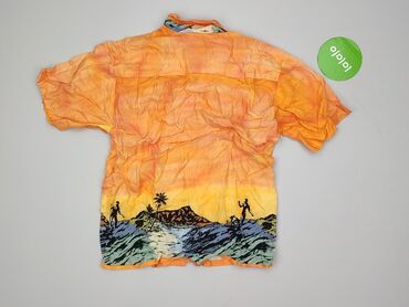 - Wzór/kolor: ombre zachód słońca w odcieniach pomarańczu i żółci; u dołu nadruk plażowo-surferski z palmami i oceanem dookoła całej koszuli