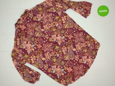 Bluzka damska z długim rękawem w etniczny wzór w odcieniach koralowo-czerwonym i bieli. - Krój: luźny, z zaokrąglonym dołem (dłuższy tył), dekolt w kształcie litery V bez kołnierzyka. - Rękawy: dł...
