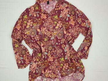 Bluzka damska z długim rękawem, w kwiatowy wzór. - Kolorystyka: czarny podkład z dużymi kwiatami w odcieniach różu, niebieskiego i fioletu, z zielonymi liśćmi. - Krój: swobodny, z delikatnie marsz...