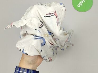 Bluzka damska New Look - Fason: luźna góra z elastyczną gumką w talii, lekko rozszerzany dół (peplum) - Rękawy: krótkie, nietoperzowe - Dekolt: łódka - Wzór: drobne ptaki w bieli i czerni na koral...