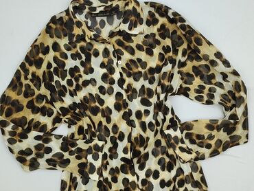 Bluzka koszulowa ZARA TRF - Wzór: panterka/leopard (beż z czarnym nadrukiem) - Krój: dłuższa koszula, zaokrąglony dół, długi rękaw, kołnierzyk - Zapięcie: guziki z przodu (ukryta plisa) - Rozmiar ...