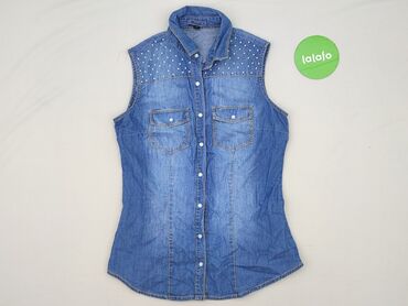 Koszula bez rękawów z denimu - Materiał: 100% bawełna (metka widoczna na zdjęciu) - Kolor: niebieski jeans, efekt sprania - Fason: bez rękawów, z kołnierzykiem - Zapięcie: rząd napów/guzików z prz...