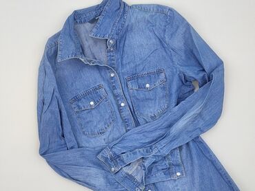 Koszula damska jeansowa Sinsay - Kolor: jasny denim (błękitny, lekko sprany efekt) - Rozmiar z metki: M - Fason: klasyczna koszula jeansowa, lekko taliowana - Zapięcie: napy/drukowane zatrzaski z ...