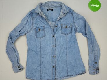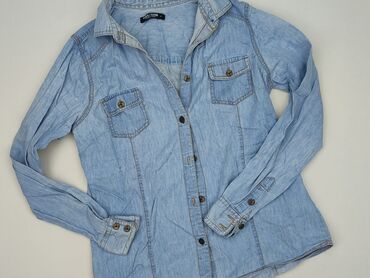 Koszula damska jeansowa Sinsay - Kolor: jasny denim (błękitny, lekko sprany efekt) - Rozmiar z metki: M - Fason: klasyczna koszula jeansowa, lekko taliowana - Zapięcie: napy/drukowane zatrzaski z ...