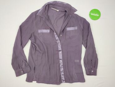 Damska koszula zapinana na guziki w kolorze fioletowym z delikatnym wzorem. Ma klasyczny kołnierzyk i rękawy o długości 3/4. Stan bardzo dobry, idealna na co dzień.
