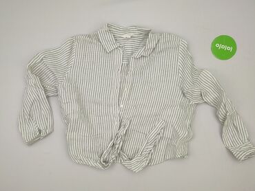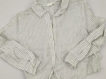 Lniana koszula damska H&M - Materiał: 100% len (metka w środku) - Kolor: bardzo jasny, chłodny odcień bieli/jasny błękit - Krój: klasyczny kołnierzyk, zapięcie na guziki z przodu - Rękawy: 3/4, ma...