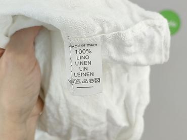 Damska koszula lniana z krótkim rękawem - Fason: luźny, lekko oversize - Zapięcie: guziki z przodu; dekoracyjne guziki również z tyłu u dołu - Kołnierzyk: klasyczny - Dół: zaokrąglony, nieco dłużs...Stan: