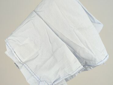 Koszula damska w paski - Krój: luźny, z opuszczoną linią ramion; tył nieco dłuższy niż przód (zaokrąglony dół) - Wzór: wąskie, pionowe paski w kolorze niebieskim i białym - Zapięcie: półplisa na g...