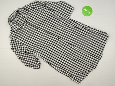 Sukienka koszulowa damska w czarno‑białą kratę - Krój: koszulowy, lekko rozszerzany ku dołowi - Dekolt: w serek z listwą guzikową do połowy długości - Zapięcie: rząd czarnych guzików z przodu; man...