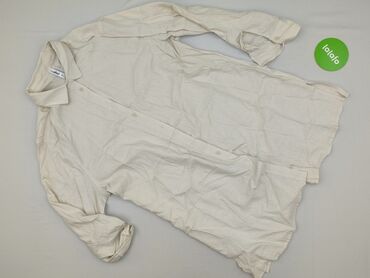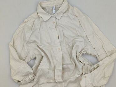 Koszula oversize w kolorze kremowym/ecru - Krój: luźny, z obniżoną linią ramion; rozcięcia po bokach u dołu - Zapięcie: na rząd jasnych guzików z przodu; mankiety również zapinane na guziki - Kołn...