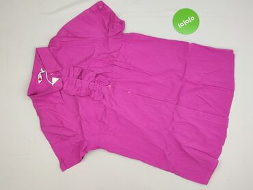 Różowa koszula damska z krótkim rękawem i wiązaniem u dołu - Fason: luźny, pudełkowy; obniżona linia ramion, krótkie rękawy z zakładką - Zapięcie: rząd guzików z przodu w dopasowanym kolorze - Koł...Stan: