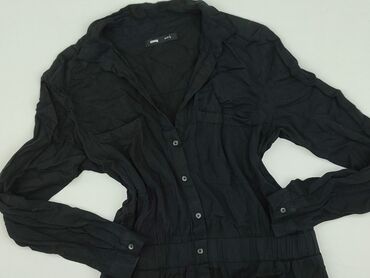 Czarna sukienka koszulowa Sinsay w rozmiarze S. Charakteryzuje się długimi rękawami, które można podwinąć i zapiąć na guzik, oraz klasycznym kołnierzykiem. Posiada zapięcie na guziki na całej długo...