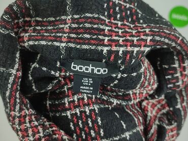 Żakiet bolerko SHEIN, rozmiar L (EU 40/42, US 8/10). - Krój: krótszy, bez zapięcia, zaokrąglone poły z przodu, długie rękawy. - Wzór: czarno-biały, geometryczne prostokąty i linie. - Materiał: e...