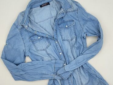 Koszula damska H&M MAMA (&Denim) - Fason: dżinsowa koszula typu tunika z dłuższym, zaokrąglonym dołem - Zapięcie: półplisa na guziki z przodu (5 guzików) - Kolor: jasny denim/bleached blue - Rękaw...