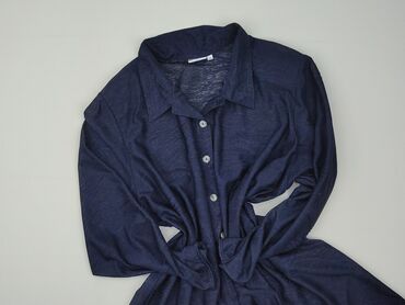 Koszula/tunika damska – kobaltowa - Fason: luźny, tunikowy - Dekolt: w serek z krótką stójką - Zapięcie: brak pełnego zapięcia, rozcięcie pod szyją - Rękawy: długie, z możliwością podpięcia (na rę...