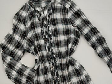 Koszula/tunika damska w kratę - Fason: dłuższa koszula – tunika, zapinana na guziki z przodu - Kolor i wzór: czarne tło, czerwona i biała krata - Rękawy: długie, mankiety zapinane na guziki - Kołn...Stan: