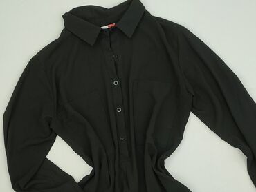 Czarna koszula/tunika damska z kołnierzykiem i zapięciem na guziki na całej długości. - Fason lekko wydłużony, za biodra (tył nieco dłuższy). - Długie rękawy z mankietami na guziki (możliwość pod...