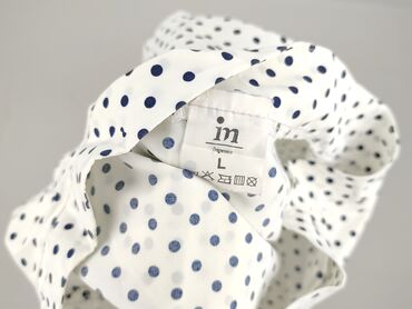 Koszula damska w rozmiarze EUR 40 marki NEXT, w kolorze granatowym z niebieskim wzorem w kropki. Charakteryzuje się krótkimi rękawami i klasycznym kołnierzem, co sprawia, że jest odpowiednia na wie...Damska koszula w groszki – in by Inpress, rozmiar L