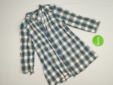 Długa koszula/tunika w kratę - Krój: wydłużona koszula – tunika, delikatnie rozszerzana ku dołowi - Rękaw: długi, z mankietem zapinanym na guzik - Dekolt: w serek z krótką listwą guzikową (kilka o...