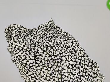 Damska koszula/bluzka z krótkim rękawem - Wzór: czarno‑biały, roślinny/abstrakcyjny all-over - Fason: zapinana na guziki z przodu, lekko taliowana; na dole po bokach wiązania do regulacji szerokoś...