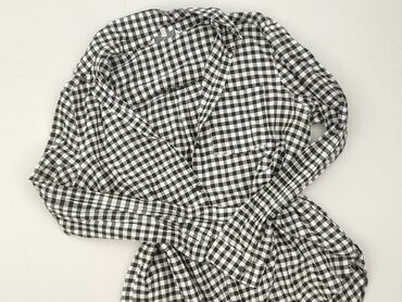Koszula damska w kratkę gingham - Krój: dopasowany, taliowany - Rękaw: krótki - Zapięcie: na guziki z przodu - Kołnierzyk: klasyczny - Wzór: drobna czarno-biała kratka - Dół koszuli delikatnie zao...Stan: