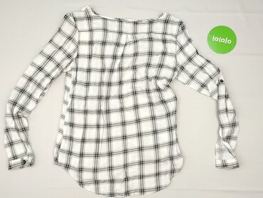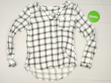 Biała damska bluzka Pepco, rozmiar 38. - Krój: luźny, z zaokrąglonym dołem i dłuższym tyłem - Dekolt: w serek (V) z krótką listwą guzikową na 3 guziki - Rękawy: długie, mankiety zapinane na guziki...