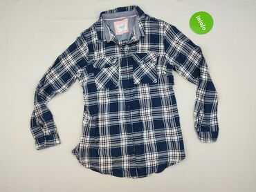 Koszula damska House, rozmiar S. - Fason: koszula z kołnierzykiem, zapięcie na guziki na całej długości - Rękaw: długi, mankiety zapinane na guziki - Kolor i wzór: granat w pionowe białe paski z m...