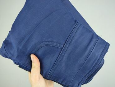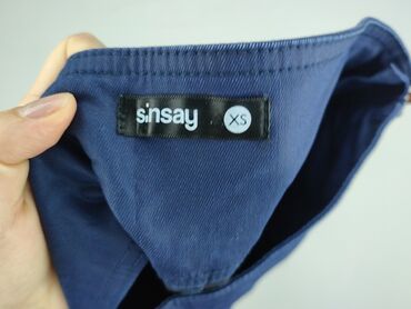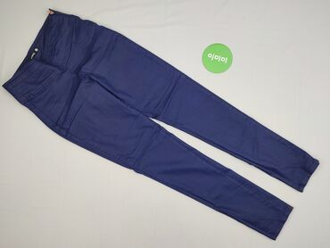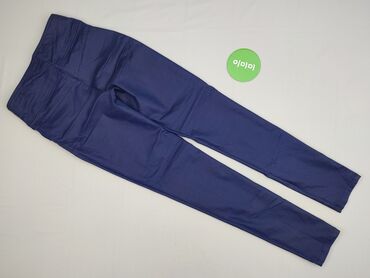 Granatowe spodnie damskie Sinsay, rozmiar M. - Fason: dopasowane nogawki, wysoki stan - Pas: elastyczna gumka - Detale: ozdobne złote guziki z przodu (po 3 z każdej strony) w stylu marynarskim - K...
