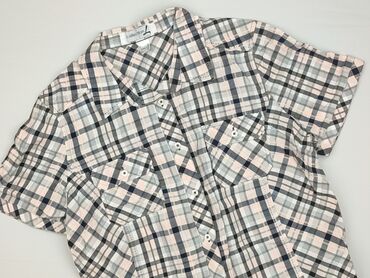 Koszula damska w kratę, krótki rękaw - Fason: koszula zapinana na guziki, kołnierzyk klasyczny - Krój: lekko taliowana, rozcięcia po bokach u dołu - Wzór: wielokolorowa krata (odcienie czerwieni, ...