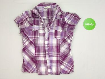 Koszula damska H&M L.O.G.G. - Model: koszula z krótkim rękawem - Kolor: jasny błękit (drobny, delikatny wzór) - Rozmiar z metki: EU 42 - Skład: 100% bawełna - Fason: lekko taliowana, z marszczenia...