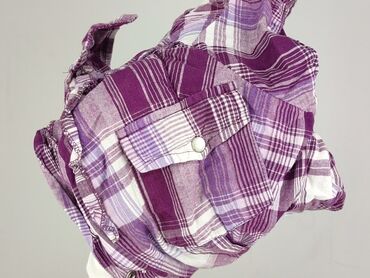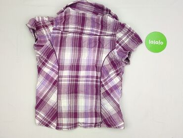 Koszula damska w kratę - Krój: dopasowany, zapinana na guziki z przodu - Rękaw: krótki - Kołnierz: klasyczny, szeroki - Wzór: krata w odcieniach bieli, fioletu i czerni - Kieszenie: dwie naszywane...