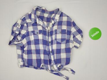 Koszula damska w kratę - Fason: koszula z krótkim rękawem, taliowana - Zapięcie: zatrzaski (napy) na całej długości przodu - Kołnierzyk klasyczny - Wzór: drobna niebiesko-biała krata (gingham) - K...