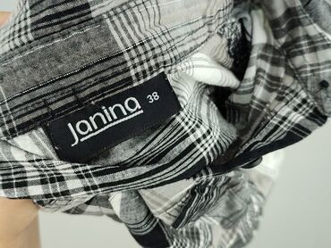 Uniwersalna koszula w kratę – idealna do casualowych stylizacji, do jeansów, spódnic czy shortów. Marka: Janina. Metka z rozmiarem 38 widoczna na zdjęciu.