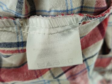 Koszula damska w kratę, krótki rękaw - Rozmiar: S (metka “S”) - Fason: taliowana, zapinana na guziki z przodu - Kołnierzyk klasyczny - Krótkie rękawy z delikatnym marszczeniem - Dwie kieszenie na ...
