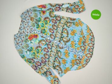 Bluzka damska z kwiatowym printem - Fason: lekko taliowana, z delikatnie zaokrąglonym dołem - Rękaw: 3/4 - Dekolt: okrągły - Rozmiar z metki: M - Wzór: duże, malarskie kwiaty w odcieniach błękitu,...