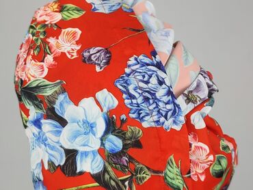 - Wzór: intensywnie czerwone tło, duży kwiatowy print (odcienie niebieskiego, różu, zieleni)