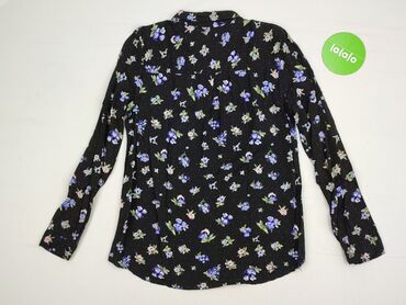 Koszula damska Sinsay Basic - Rozmiar: S (z metki) - Materiał: 100% wiskoza – lekka, przewiewna, miękka w dotyku - Wzór: drobne, pionowe biało‑niebieskie paseczki z nadrukiem kwiatowym w odcieniac...