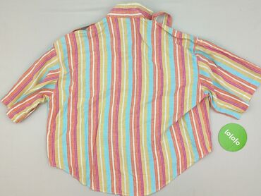 Koszula damska w paski, krótki rękaw - Wzór: pionowe i poziome szerokie pasy w kolorach czerwonym, granatowym i białym (styl marynarski) - Krój: prosta, lekko przedłużona, z kołnierzykiem - Zapięc...Stan: