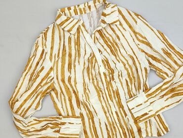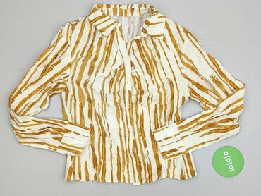 Biała koszula damska z długim rękawem i klasycznym kołnierzykiem. - Zapięcie na guziki z przodu; dekoracyjne złote guziki przy mankietach i pod kołnierzykiem - Kryta plisą listwa guzikowa z przodu ...Stan: