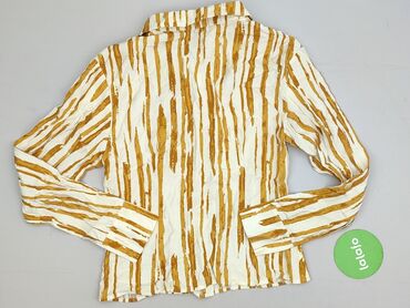 Biała koszula/bluza damska z fakturowanej tkaniny - Fason: luźny, lekko skracany przód, wydłużony tył, surowo wykończony dół - Zapięcie: na guziki z przodu - Kołnierz: stojący - Rękawy: długie, ma...