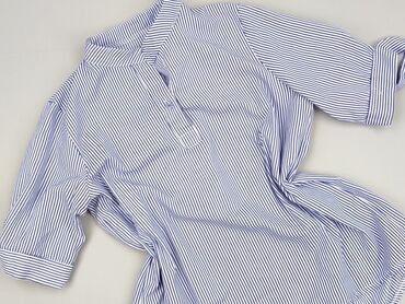 Koszula damska w paski - Krój: klasyczna koszula zapinana na guziki z kołnierzykiem, długie rękawy z mankietami na guziki - Wzór: drobne pionowe paski w kolorze błękitno-białym - Rozmiar z metki: ...