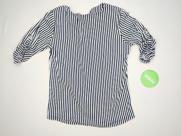 Koszula damska w paski - Krój: klasyczna koszula zapinana na guziki - Rękaw: długi, mankiety zapinane na guziki - Kolor/wzór: granatowo-białe pionowe pasy o różnej szerokości - Materiał: miękka, l...