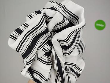 - Wzór: czarno‑białe, różnej szerokości paski ułożone pionowo i poziomo, optycznie wysmuklające sylwetkę