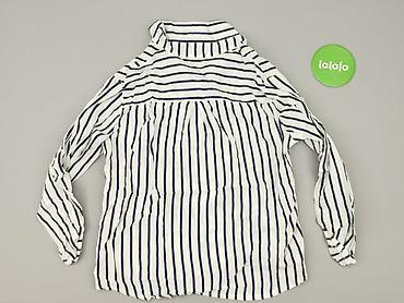 Koszula damska w paski, rozmiar 38. - Krój: luźniejszy, długość zakrywająca biodra, dół zaokrąglony - Rękawy: długie z mankietami - Dekolt: stójka z krótką listwą i trzema guzikami - Wzór: drobne ...