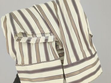 - Wzór: pionowe paski w odcieniach kremu, beżu i brązu; mankiety z poziomymi paskami dla kontrastu